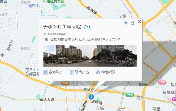 成都站150米向西南步行 到 火车北站 D口 进站8站乘 地铁7号线外环 (北站西二路方向) 到 文化宫 E口 出站170米向东步行 到 地铁文化宫站4站乘 309路 (温江天府公交站方向) 或37路 到 瑞联路西420米向西北步行 到 天渡医疗美容医院