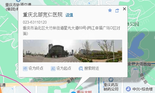 重庆西站80米向东南步行 到 重庆西站 1口 进站10站乘 轨道交通环线内环 (上桥方向) 到 冉家坝110米向东步行 到 冉家坝1站乘 轨道交通6号线 (北碚方向) 到 光电园 2B口 出站900米向东北步行 到 重庆北部宽仁医院