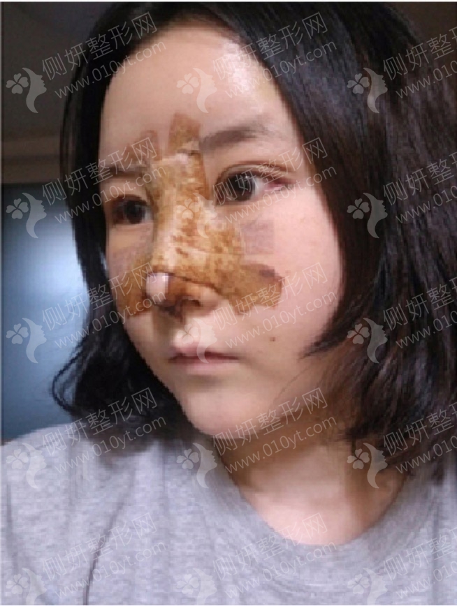 1、术后当天做完手术后,鼻孔内会有少量血性液体流出,鼻孔边缘出现血痂。鼻背有轻微的疼痛,鼻尖中部开始肿胀;