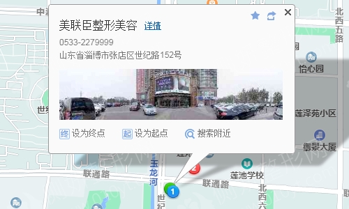 淄博站-进站口280米向西步行 到 火车站17站乘 95路 (银泰城西门方向) 到 西班牙风情街340米向北步行 到 美联臣整形美容
