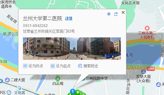 兰州站320米向西步行 到 海天新都9站乘 33路 (西关什字方向) 到 西关什字310米向西步行 到 兰州大学第二医院兰州大学第二医院