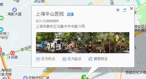上海站420米向西北步行 到 自然博物馆 1口进站1站乘 地铁13号线 (张江路方向) 到 南京西路 11口 出站430米向东步行 到 南京西路 3口 进站1站乘 地铁2号线 (徐泾东方向) 到 静安寺 1口 出站1.2公里向南步行 到 上海华山医院地铁1号线 45路约40分钟 8.3公里 换乘1次 步行700米