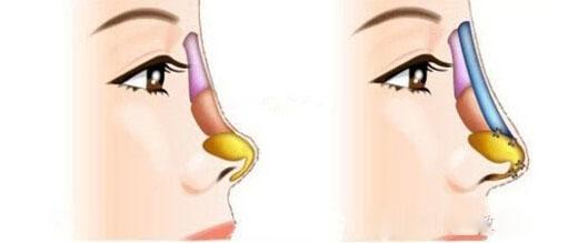 将医用固体硅胶假体埋入鼻背筋膜下面,使鼻梁或鼻尖突起,从而改变鼻子的形状。
