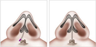 5. 重度歪曲,需要鼻内入路,切开歪曲的鼻骨,将其矫正后固定。