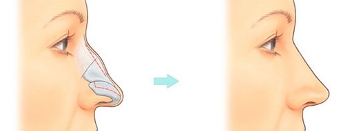 手术截除部分鼻骨,改善鼻背过高的状况。