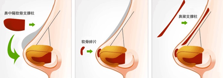 2.以鼻中隔软骨或耳软骨做鼻梁的延长及支撑。