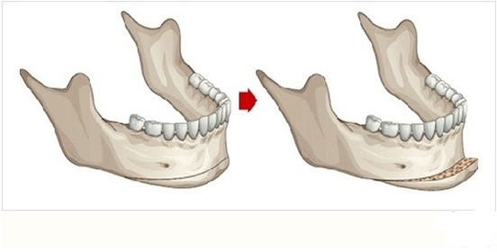 将颏部骨质水平切开并前推,以增加颏部的突度。