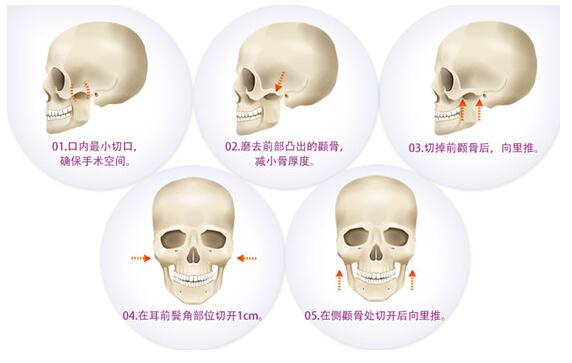 2. 磨去前部凸出的颧骨,减少骨厚度。