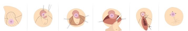 2.切除部分乳房皮肤,切除适量脂肪和乳腺组织。