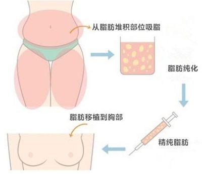 自体脂肪隆胸是从身体腰、腹、臀、腿等脂肪较丰厚的部位,吸取出脂肪颗粒进行净化后,移植到胸部的一种隆胸术。