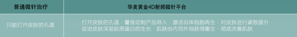 黄金4D射频微针平台,穿过皮肤屏障,直达皮肤的真皮层,就像针直接扎进了皮肤里面一样,打开皮肤修复系统,进行胶原蛋白的重组,而且治疗一次可以确保肌肤胶原蛋白50%以上的增长。