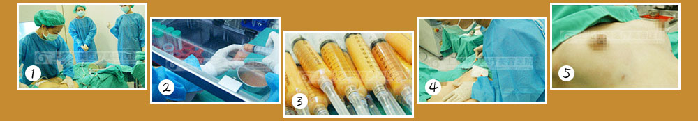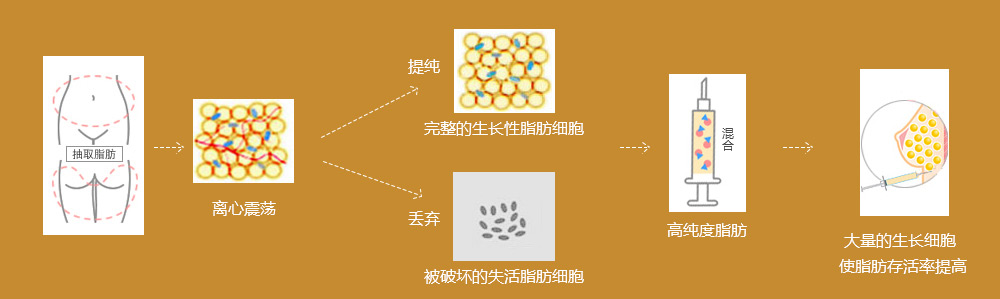从手术者自身提取少量脂肪(腰部、腹部、大腿等),在实验室培养,分离提取脂肪细胞。之后,提取大量的脂肪细胞混合在培养的脂肪前体细胞内,分4层精确注入胸部。实现胸部有型、丰满,相当于乳房二次发育。