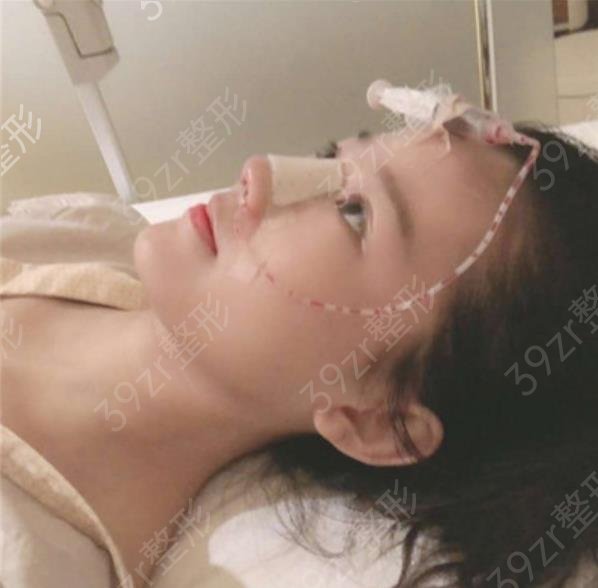 自体肋软骨隆鼻术后七天:今天带着紧张激动的心来到医院拆线。为了缓解紧张和恐惧,我还特意拉了男朋友陪我。还好拆线的护士技术好,挺轻的,态度也不错。她还跟我开玩笑。拆线的紧张瞬间就这样过去了,有轻微的疼痛,但是拆线后更舒服了。我终于自由了,现在终于可以洗头了。不过目前鼻子看起来还是有点肿,不过和之前的照片比起来感觉出来了,法令纹没了,鼻梁没塌,鼻孔小了很多。从侧面看,小鼻子的轮廓已经慢慢浮现,到目前为止我还是很满意的,希望以后能恢复的越来越好。