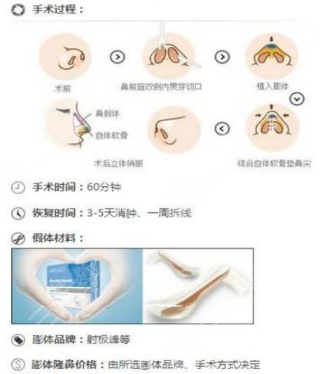 膨体隆鼻手术其实是很简单的,就是将选择好的膨体材料放置到鼻子之处,之后便可以达到隆鼻的目的,效果是特别显著的,让人的鼻梁变得很高挺,而且相容性很好,很少出现副作用。