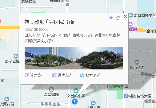 济宁汽车北站70米向东北步行 到 市交通局5站乘 103路 (豪德商贸城方向) 到 市图书馆640米向西南步行 到 韩美整形美容医院