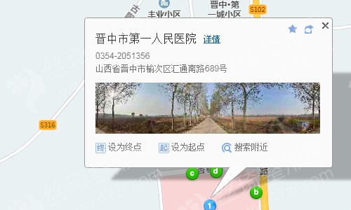 晋中站240米向西南步行 到 高铁晋中站13站乘 201路 (公交公司方向) 到 中国银行210米向东步行 到 中国银行9站乘 801路 (公交太谷分公司方向) 到 晋中一院新址东门100米向西南步行 到 晋中第一人民医院,