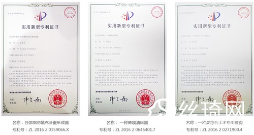 2016年9月,获得“一种鼻部手术手术专用拉钩”和“一种吸脂手术针眼保护器”两大专利证书