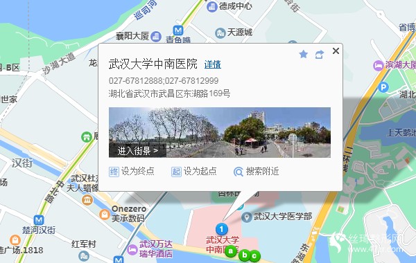 武汉站80米向西步行 到 武汉火车站11站乘 轨道交通4号线 (柏林方向) 到 洪山广场 B5口 出站410米向东步行 到 洪山路洪山广场3站乘 411路 (红庙公交场站方向) 或 701路 578路 到 东湖路中南医院110米向东北步行 到 武汉大学中南医院