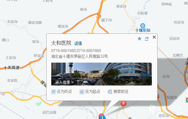 十堰站780米向西北步行 到 公交二公司2站乘 96路 (高铁站方向) 或 67路 10路到 太和医院170米向南步行 到 太和医院