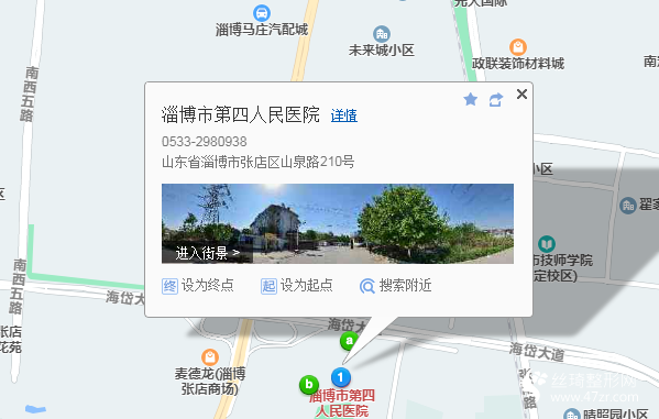 淄博站330米向东北步行 到 火车站7站乘 58路 (淄博北站方向) 到 中国银行600米向东步行 到 淄博市第四人民医院