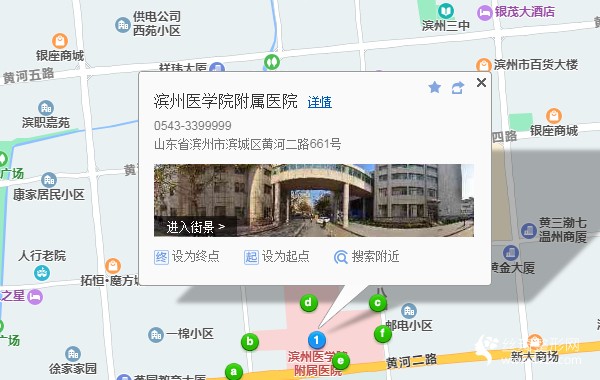 滨州站700米向西南步行 到 火车站10站乘 112路 (汽车总站方向) 到 万达广场430米向东步行 到 麒麟阁11站乘 26路 (董家集方向) 到 滨医附院40米向西步行 到 滨州医学院附属医院
