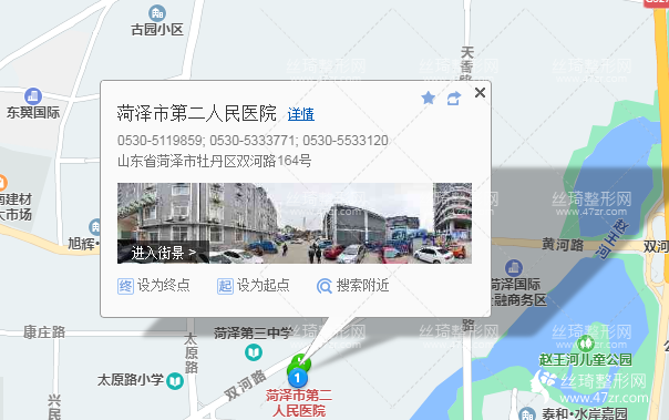 菏泽市第二人民医院是一所是广大爱美者比较欢迎的这些美容机构,医院的科室齐全,而且周围的交通便利,在1971年所成立到现在已经有着齐全的整形项目和完善的医疗条件,同时医院所使用的医疗设备在没问题性能方面很可靠,因为都是从正规厂家所引进,这样也可以手术的果性。与此同时医院的医生也都有着比较高的学历,对于整形外科知识也有着很丰富的操作经验。