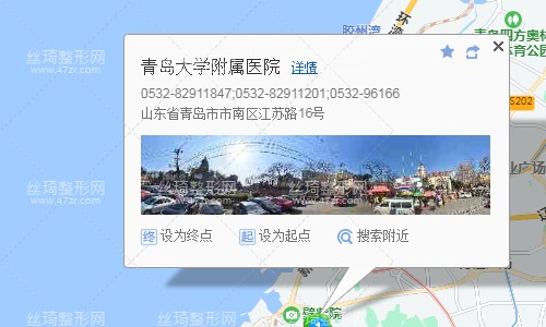 青岛站370米向东步行 到 湖北路中山路2站乘 221路 (福州北路停车场方向) 到 青医附院190米向西步行 到 青岛大学医学院附属医院