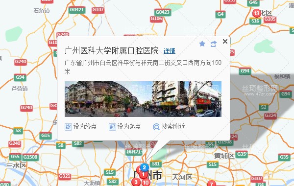 广州市汽车客运站540米向东步行 到 广州火车站 G口 进站4站乘 地铁2号线 (广州南站方向) 到 广场4站乘 地铁6号线 (浔峰岗方向) 到 如意坊 B口 出站450米向东南步行 到 广州医科大学附属口腔医院