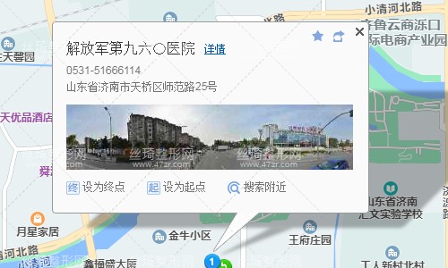 淄博客运中心370米向西步行 到 淄博客运中心1站乘 4路直达 (周村火车站方向) 到 周村火车站820米向西步行 到 解放军第九六〇医院
