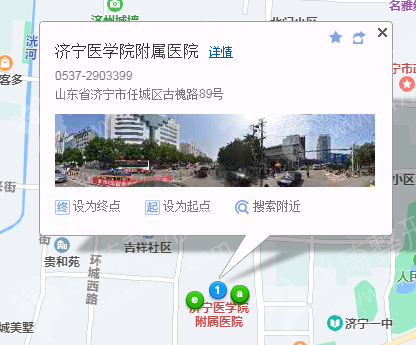济宁站250米向北步行 到 火车站7站乘 16路 (北城驾校方向) 到 快活林330米向东北步行 到 济宁医学院附属医院