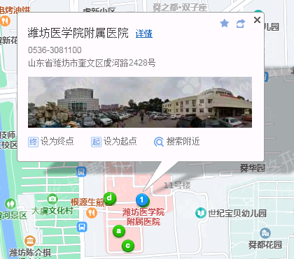青州市站160米向西步行 到 火车站17站乘 青州K11路 (王府办事处方向) 到 人民医院70米向西北步行 到 泰山医学院附属青州医院