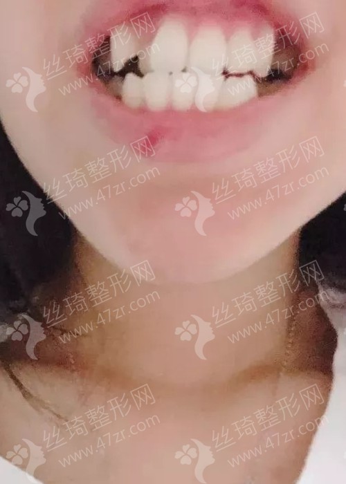 手术之后:我一直都会注意手术部位的卫生,每次都会注意保持良好刷牙习惯,而且不吃坚韧性的食物,所以我的保持期果维持的很好,并没有出现脱落的情况,现在我的牙齿虽然还佩带着矫正器,但牙齿已经变得很整齐了,我感到特别的开心,希望我的牙齿能够尽快的变回正常的状态吧。