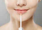 3、最后将明亮的唇彩竖刷于下唇中央,就能创造出热吻后的性感噘唇。