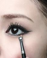 为了将在步骤中描出的眼线调节得更加漂亮,接下来使用眼线液。尽量在接近眼际的部位描画,让画出的眼线位于睫毛根部的略上方。