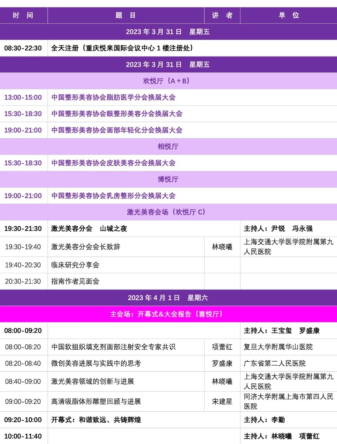 中国整形美容协会第十届全国微创医学美容大会会议通知及大会日程
