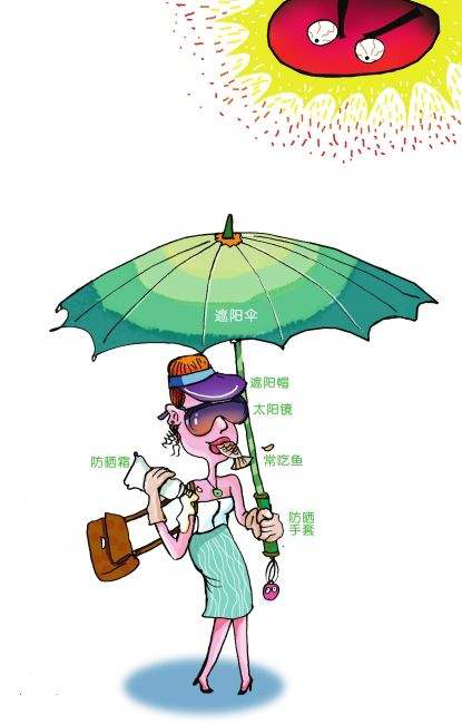 1. 阳光可以说是光老化的最大杀手。所以,需要小仙女们加强防晒的措施,譬如穿长袖长裤、戴宽边帽子、撑洋伞、正确使用防晒霜,若是时间允许,也需要避免在早上10点-下午2点之间外出;