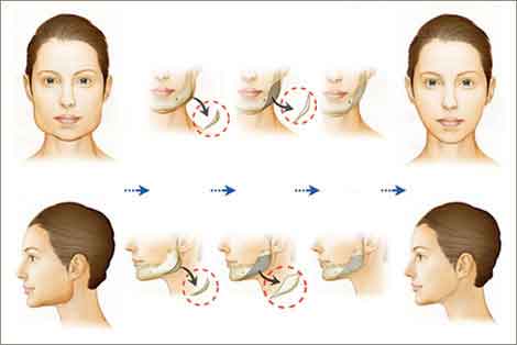 在口腔内侧接近下颚角的位置切开,从口腔内将面部皮肤和肌肉翻开,将肌肉与骨膜进行分离,把需要手术的骨头部位暴露出来,根据设计的磨骨量,画出磨骨线;用长柄摆动锯,按照磨骨线截除下颌角,一般可以弧形截除3~4cm长、1~2cm高的范围,修平磨骨后的棱角。如果患者颊部较为肥大,可以同时去除部分内层咬肌,或者向外侧稍加分离去除部分颊脂垫。要注意保护神经血管和截骨对称。
