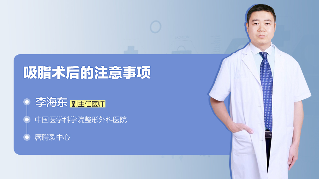恢复提示:伤口处会有少许渗液,肿胀明显,皮肤淤青,吸脂部位疼痛;由于术中局部注射了大量的肿胀液,术后当日外敷料可能被渗透。