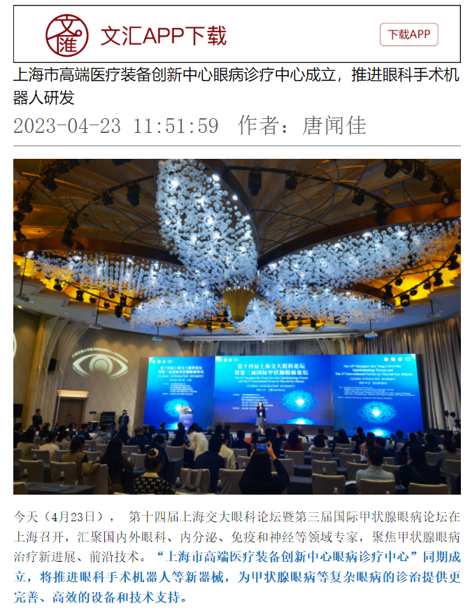 >>>【文汇】 上海市高端医疗装备创新中心眼病诊疗中心成立,推进眼科手术机器人研发 今天(4月23日), 第十四届上海交大眼科论坛暨第三届国际甲状腺眼病论坛在上海召开,汇聚国内外眼科、内分泌、免疫和神经等领域专家,聚焦甲状腺眼病治疗新进展、前沿技术。“上海市高端医疗装备创新中心眼病诊疗中心”同期成立,将推进眼科手术机器人等新器械,为甲状腺眼病等复杂眼病的诊治提供更完善、高效的设备和技术支持。 论坛由上海市眼部疾病研究中心、上海市眼眶病眼肿瘤重点实验室、中国甲状腺眼病诊疗联盟、上海交通大学医学院视觉科学研究所和上海交通大学医学院附属第九人民医院眼科联合主办。中国工程院院士、上海交通大学副校长、上海交大医学院院长范先群,与中国工程院院士、上海交大医学院附属瑞金医院院长宁光共同担任大会主席。会议邀请杨雄里院士、苏国辉院士等30余位专家莅临。 甲状腺眼病是一种伴随全身多器官损害的自身免疫性疾病,又称Graves眼病,是成人发病率最高的眼眶病,与甲状腺功能密切相关,发病机制复杂,病情严重。 范先群院士表示,甲状腺眼病涉眼科、内分泌科、甲状腺外科、核医学科、影像科等,需要专业之间、学科之间、医院之间更紧密的合作,让多学科交叉、多系统融合赋能发展。 香港中文大学眼科与视觉科学学系Calvin CP Pang教授、Kelvin Chong教授谈到,相对欧美人的典型表现,亚洲人容易出现“冷表现”,即初期不肿不痛,甚至甲状腺功能也是正常的,这给早期诊断带来难度。“我们通过高阶磁共振技术等探查发现眼眶内的病变,在实现早期诊断后,可以通过手术之外的创新药物减压方式,让患者尽量少创伤、并收获好的治疗效果。” 医生介绍,甲状腺眼病的典型表现包括眼球突出、眼睑退缩、球结膜水肿、眼球运动障碍、复视、视力下降等,甚至会导致角膜穿孔、压迫性视神经病变和视神经萎缩,损害患者的面部外观及视功能。德国美因茨约翰内斯古腾堡大学(JGU)医学中心George J.Kahaly 教授表示,“为给患者更好的治疗,我们对这类患者会提供由眼科医生、内分泌科医生共同出诊的模式。” 中华医学会内分泌学分会主任委员、瑞金医院内分泌科主任王卫庆教授的致辞同样强调,多学科交叉和多系统整合已成为现代医学发展重要趋势,眼科、内分泌科和其他相关学科将携手与共,推动甲状腺眼病的诊疗研究迈向新台阶。 会议期间,上海市高端医疗装备创新中心眼病诊疗中心揭开面纱,由上海市高端医疗装备创新中心、上海交大医学院附属第九人民医院共同成立。大会执行主席、上海九院眼科周慧芳教授介绍,中心旨在瞄准眼病诊疗高端医疗装备技术前沿,实现模式创新,攻克行业共性难题,并在服务医疗装备行业的过程中培养高端医疗装备复合人才。 微创机器人集团相关负责人何超透露,正与九院团队合力推进眼科机器人研发。 “聚焦眼眶外科的手术器械自主研发,也需要多学科交叉,医工交叉,在为患者实现摘除病变的目标同时,改善视功能,从而更好地恢复正常工作生活。”范先群院士谈及正在推进手术机器人研发进程表示。 香港希玛国际眼科医疗集团林顺潮教授表示,眼科领域高端装备原以进口为主,这个新平台聚拢医、工、研、企等多方力量,有助于大大提速医疗器械的自主研发进程。 本次会议主要分为四阶段,从视觉功能及神经损伤修复、免疫失衡与重建、甲状腺眼病手术治疗进展、甲状腺眼病规范诊疗和多学科协作方面,围绕甲状腺眼病最新发病机制研究、靶向药物研发、手术技术创新和诊疗理念转变等,为疑难眼病的科学研究和临床诊疗提供新思路和新方法。周慧芳教授表示,论坛将进一步促进甲状腺眼病规范化治疗,推进临床新药、手术新技术的多中心合作研究,为进一步提高国际甲状腺眼病的诊治水平作出贡献。 作者:唐闻佳 |