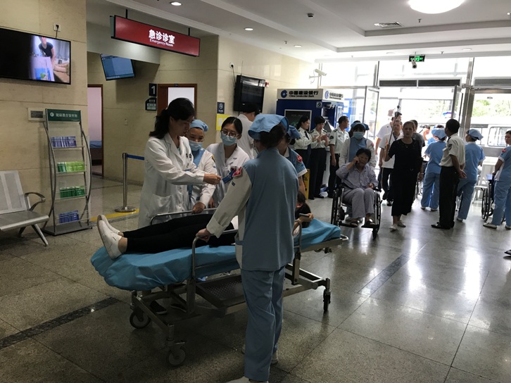 9月9日是第18个“世界急救日”,今年主题是“急救与家庭意外伤害”。为迎接党的十九大顺利召开,进一步提高我院应急医疗救治能力,提升红十字救治服务能力,9月7日下午,我院在医务二处、医院红十字办公室共同组织下,医院红十字医疗队和应急医疗队在北部院区进行了模拟批量伤员联合应急医疗救治演练,取得了圆满成功。我院红十字理事会副会长、分管副院长吴正一全程观摩了应急演练,并检查了应急医疗物资储备。行政部、北部综合办、护理部、工会办公室等相关部门负责人也观摩了演练。 下午13点45分,医院急诊预检收到120电话,宝杨路发生公共汽车与小汽车相撞事件,造成人员受伤,受伤多达10人,其中两人受伤严重。10分钟左右到院。接院后,医院立即启动应急医疗救治预案。 模拟批量伤员转运、急诊现场分流 医院通过微信平台向红十字医疗队和应急医疗队发出到急诊集合,各队员接到通知后,边走边发微信报告收到,迅速赶到急诊。3分之后,医院打电话给微信没反馈的队员,队员接到电话后,马上赶到急诊。集合时间总共为7分钟。医务处和综合办工作人员第一时间内到急诊组织抢救。护理部挂出红、黄、绿、黑区牌子,划分诊治区域。做好物资准备工作。抢救室迅速按排空出2张监护床。后勤保障工作人员将5辆推床、5辆推车送到急诊。各医生到达自已负责的区域。5分钟后。第一批救护车驶来,患者5人送达,急诊科预检分诊后,送红区3人,黄区2人。危重抢救病人由一个医生、一个护士监护。进行初步诊断和处置。安排专科医生诊治。其中1例是孕38周会阴部出血,血压80/50mmHg,为危重孕产妇,即刻启动危重孕产妇抢救工作,妇产科主任到场负责抢救,报院产安办,区妇幼所。胎儿心监及超声发现胎儿宫内窘迫,须马上终止妊娠。通知血库,应急备血,通知手术室。手术室5分钟安排了两个房间,一个为剖腹产,一个为脾破裂剖腹探查手术。5分钟后第二批轻伤患者送达,经分检后,有发热和接触家禽史1例。启动传染病应急隔离通道,分发口罩,进行必要的防护和救治。医务二处汇同急诊医护人员第一时间对群伤信息进行梳理及登记。 ![]() 模拟救治危重孕产妇 模拟疑似SARS感染病例隔离诊疗 ![]() 检查红十字应急医疗物资储备 本次演练,考察了红十字医疗队伍集中、院内群伤救治、应急物资储备及调拔、应急指挥等诸多环节。在演练中,红十字队员和应急医疗队员反应迅速、团结合作、流程合理、护理部应急人员充足、后勤保障出色。同时,通过此次演练,进一步加强了我院在应急医疗、群伤多发伤救治的水平和能力,以便在今后的突发情况时能更好的服务社会、服务患者。 (文:陶海荣/摄影:陆晓尉) |