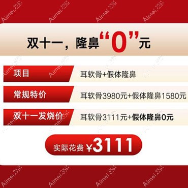 常规价格:耳软骨3980元+假体隆鼻1580元
