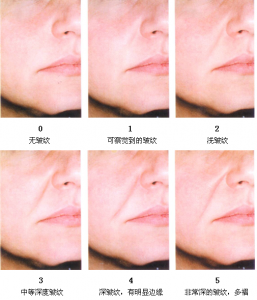 Genzyme公司对鼻唇沟进行的分级,按照突出和皱褶程度分为0-5级共6个等级(见图2),1-2级是轻度鼻唇沟,3级是中度鼻唇沟,4-5级为重度鼻唇沟。