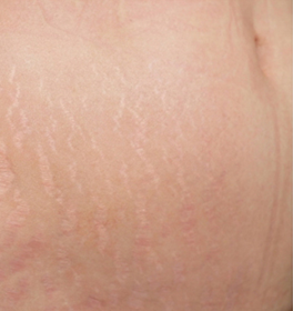 妊娠纹是萎缩纹的一种,是人体在怀孕过程当中产生的皮肤纤维断裂现象,呈红色、白色或紫色条纹。萎缩纹还包括肥胖纹、运动裂纹等,常发生于健身、体重骤增时,位于运动幅度较大的身体部位,除腹部外,还有股内外侧、膝盖、臀部、腰骶等部位。
