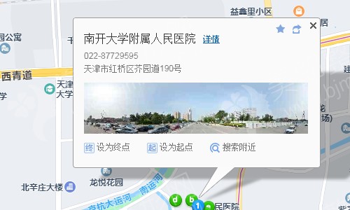 天津西站380米向西南步行 到 西站公交站1站乘 746路 (王庆坨公交站方向) 或 153路 到 邵公庄大街950米向西南步行 到 南开大学附属人民医院。