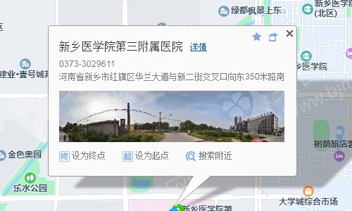 新乡站130米向东步行 到 火车站18站乘 55路 (关堤乡政府方向) 或 55路区间 185路 到 华兰大道新二街80米向东步行 到 新乡医学院第三附属医院