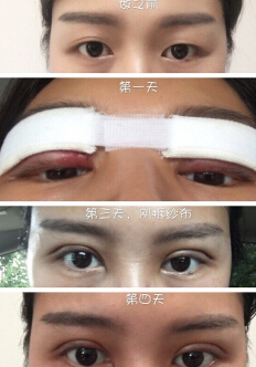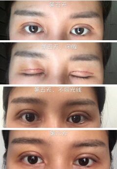 前三无包着纱布,纱布拆了以后我感觉恢复的就已经很好了,以至于后面几天总觉得没啥区别。拆线也不疼,基本没什么感觉,现在还是有点肿,等慢慢恢复吧。