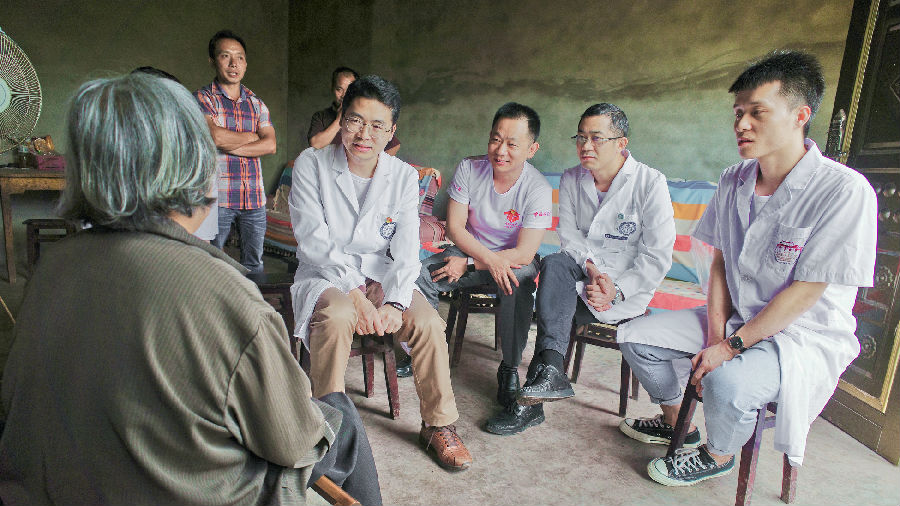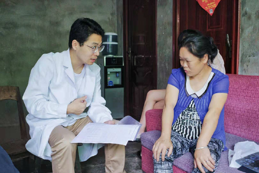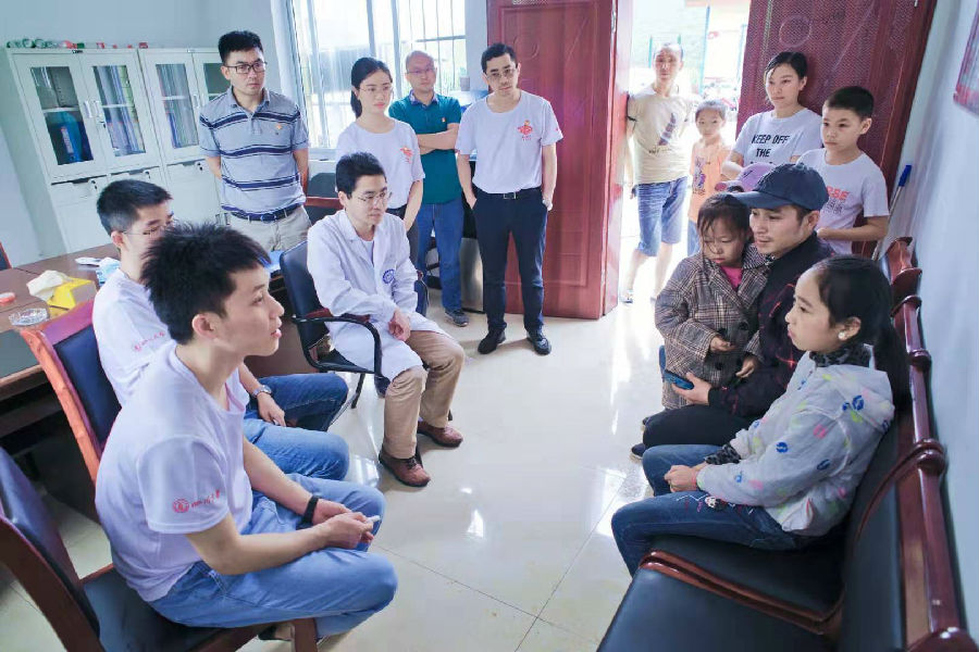 团队对贫困户家中长期以来因突发头痛后晕厥的一位患者仔细问诊,心内科魏家富副教授为该患者进行了心血管系统体格检查