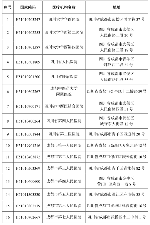 注意:成都市、省本级医保首次认定后也可按规定至其他定点医疗机构治疗报销(注意事项见常见问题解答,定点医疗机构名单见附件4、5)。