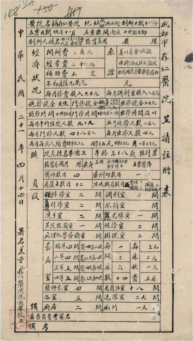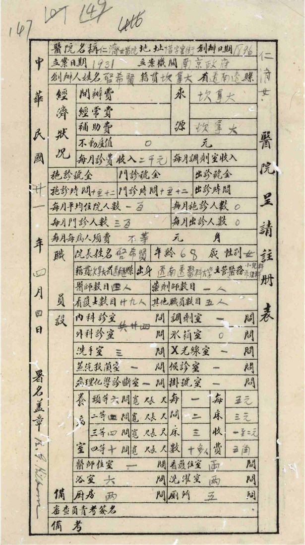 仁济女医院注册表