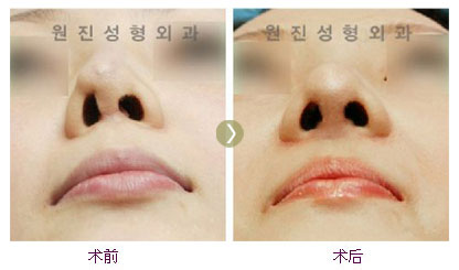 3、鼻外形不美。表现为鼻梁过高,鼻梁过窄,额鼻角缺乏弧度,鼻体曲线不够显得生硬。主要由于假体雕刻不适合所致。